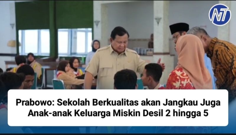 Nusantaraterkini.co, Jakarta — Presiden Prabowo Subianto menegaskan komitmennya memperluas jangkauan Sekolah Rakyat yang berkualitas bukan hanya bagi kelompok ekonomi terbawah desil 1 dan 2, tetapi juga hingga desil 2 sampai 5.