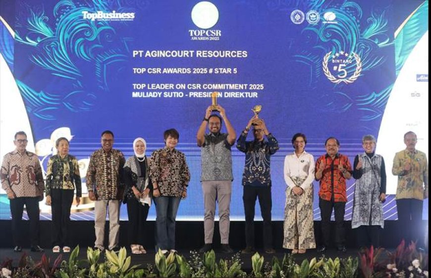 Nusantaraterkini.co, JAKARTA - Komitmen kuat terhadap pertumbuhan dan kemajuan masyarakat lingkar tambang mengantarkan Presiden Direktur PT Agincourt Resources Muliady Sutio kepada penghargaan TOP Leader on CSR Commitment di ajang bergengsi TOP CSR Awards 2025.