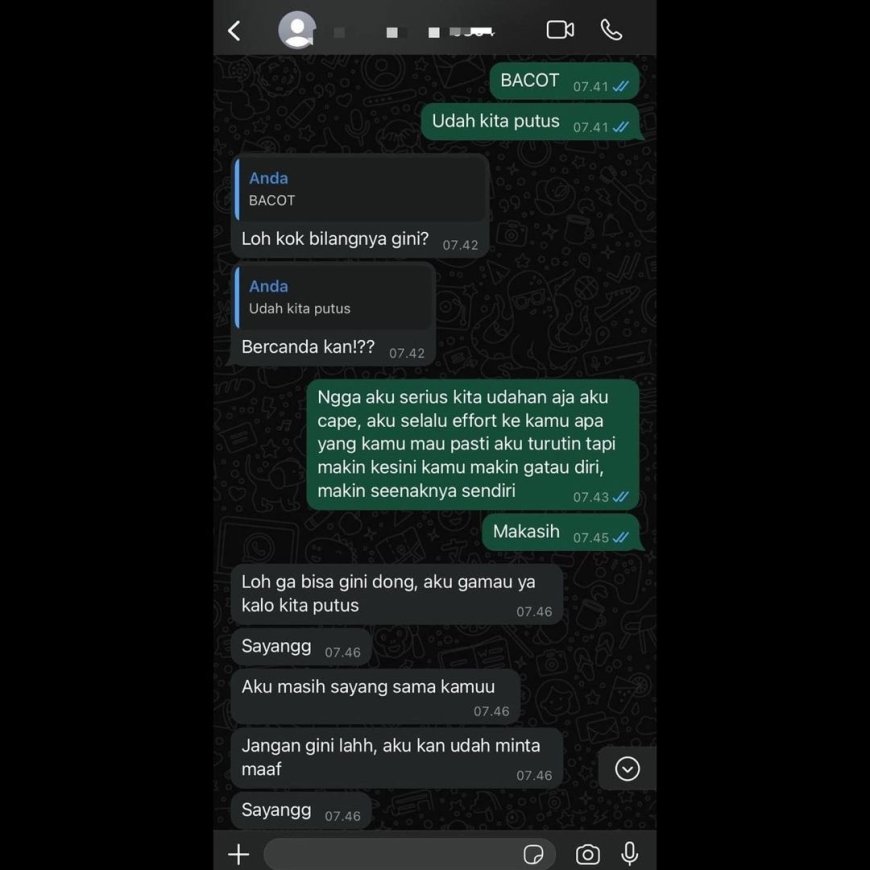 Chattingan itu disebar ke media sosial karena sang pria seperti sudah tidak tahan dengan perlakukan pacarnya yang selalu ingin dimengerti dan langsung berkata yang tidak pantas kepada pacarnya kalau permintaannya tidak dituruti.