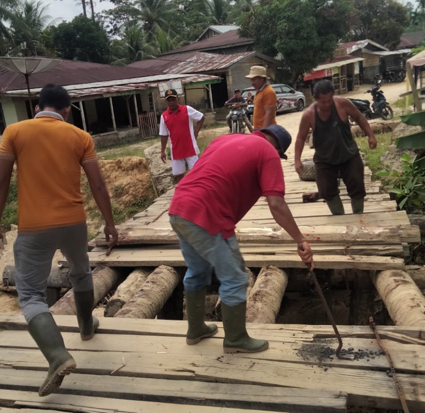 Sembari menunggu tindak lanjut dari kantor regional, jelasnya, Dedi mengatakan pihaknya berinisiatif menggunakan bahan bahan yang tersedia di kebun dan mengajak seluruh karyawan secara bersama sama melakukan gotong royong untuk memperbaiki jembatan Desa Pelita Sagoup Jaya.