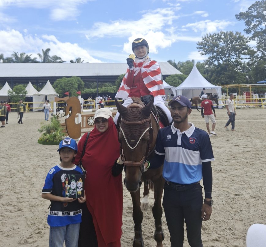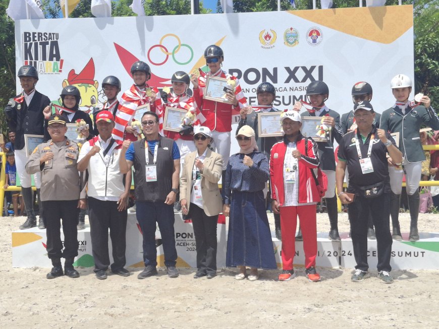 Figur Fachrel Faiturachman yang menunggangi Misspika, Nathanael Gabriel Stevano Menayang menunggangi Babriola dan Muhammad Aizel Indy Rukmana menunggangi Evita menyumbangkan perunggu untuk Sumatera Utara.