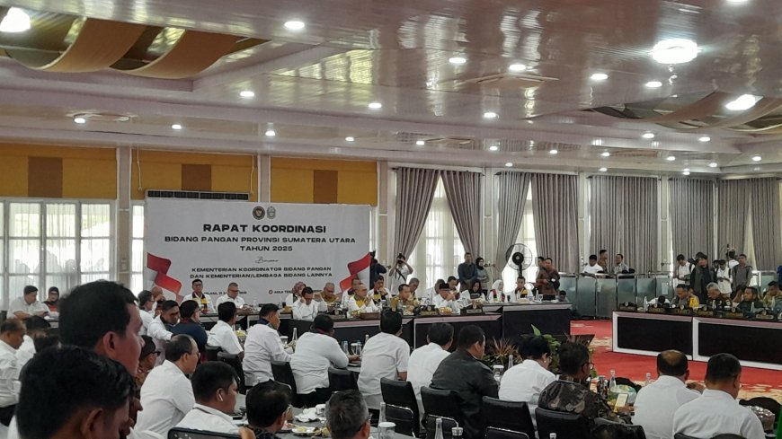 Rapat ini dihadiri oleh sejumlah pejabat penting, termasuk Menteri Koordinator (Menko) Pangan Zulkifli Hasan, yang memimpin pembahasan mengenai isu strategis pangan di Sumut.