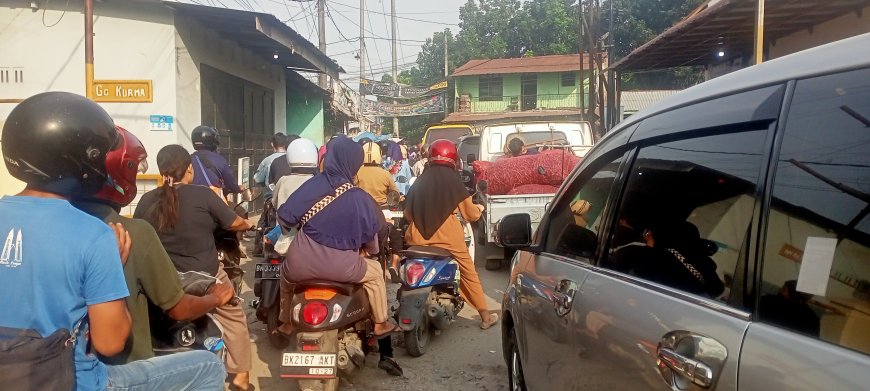 Nusantaraterkini.co, MEDAN - Ratusan kendaraan hampir tidak bergerak akibat arus lalu lintas macet di Jalan Beringin Pasar 7, Kecamatan Percut Sei Tuan, Kabupaten Deli Serdang, Senin (22/7/2024) pagi.