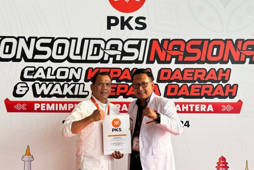 Nusantaraterkini.co, BINJAI - Dewan Pimpinan Pusat Partai Keadilan Sejahtera (DPP PKS) menyerahkan surat keputusan (SK) B1-KWK kepada pasangan bakal calon Wali Kota dan Wakil Wali Kota Binjai Zainuddin Purba-Hendro Susanto, dalam agenda konsolidasi nasional di ICE BSD, Kabupaten Tangerang, Banten, Selasa, (20/8/2024).