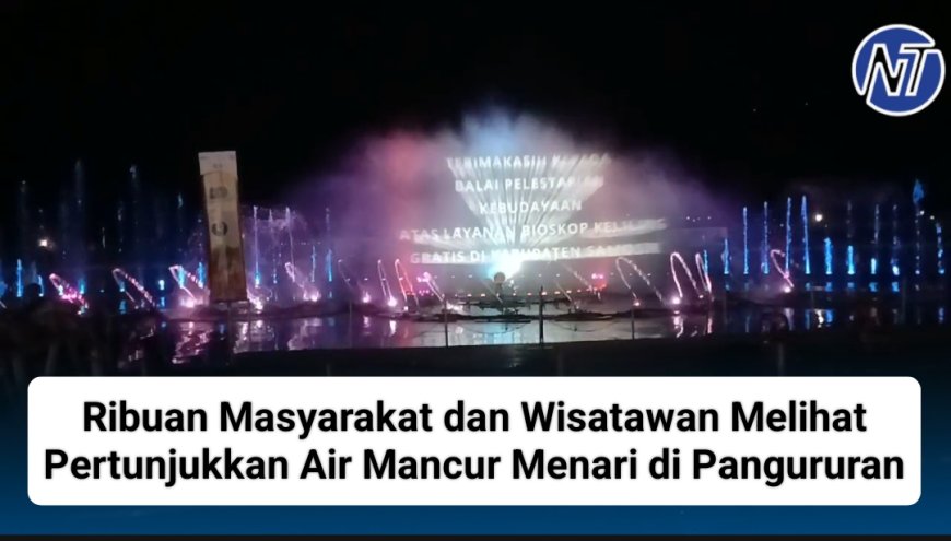 Nusantaraterkini.co, Samosir - Ribuan masyarakat Samosir dan wisatawan menyaksikan pertunjukan Air Mancur Menari atau Waterfrocity Pangururan secara gratis di Panggung Terapung, Pangururan, Kabupaten Samosir.