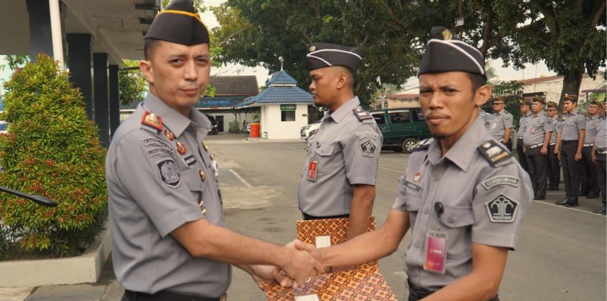 Nusantaraterkini.co, MEDAN - Rumah Tahanan Negara (Rutan) Kelas I Medan memberikan penghargaan pegawai yang telah menunjukkan prestasi kerja yang baik. Penyerahan Penghargaan kepada Pegawai Teladan Triwulan I Tahun 2025 ini dilaksanakan pada Kegiatan apel Senin (3/3/2025).