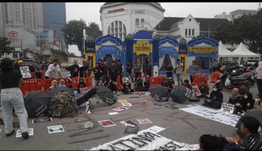 Dilokasi, aksi yang digelar dengan beragam poster serta spanduk penolakan sikap DPR RI yang telah mengesahkan RUU TNI ini. Tulisan tulisan yang bernada satire juga banyak di bentangkan.
