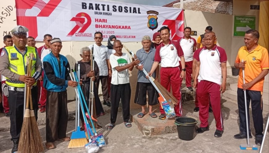 Nusantaraterkini.co, TAPSEL - Dalam rangka menyambut HUT Bhayangkara ke-79, Polres Tapanuli Selatan (Tapsel) menggelar Bakti Sosial (Baksos) dan Bantuan Sosial (Bansos), di beberapa lokasi di Wilayah Hukum (Wilkum) Polres Tapsel.