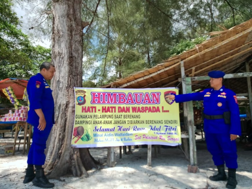 "Objek wisata pantai menjadi salah satu tempat tujuan wisata masyarakat dalam menikmati libur Lebaran ini. Spanduk imbauan Kamtibmas ini kita pasang untuk mengingatkan pengunjung, serta untuk mengantisipasi terjadinya hal-hal yang tidak diinginkan," ujarnya, Kamis (11/4/2024) malam.