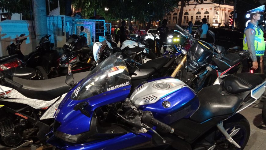 Dalam razia itu, tampak ada puluhan motor yang ditilang.