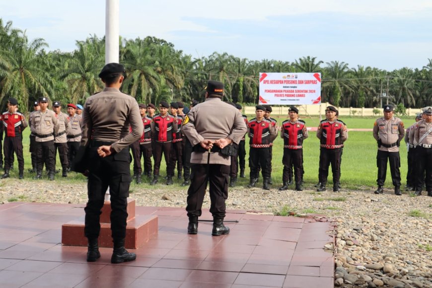 Nusantaraterkini.co, PALAS - Dalam rangka pengamanan tahapan Pilkada Serentak 2024 yang selama ini sudah terlaksana dengan baik, sehingga situasi kamtibmas di wilayah hukum Polres Palas tetap, damai, kondusif, dan terkendali, Kepolisian Resor Padang Lawas (Polres) menggelar Apel Pergeseran Pasukan (Serpas) personel Pam TPS Pilkada Tahun 2024, di Lapangan Apel Mapolres Palas, Senin (25/11/2024).