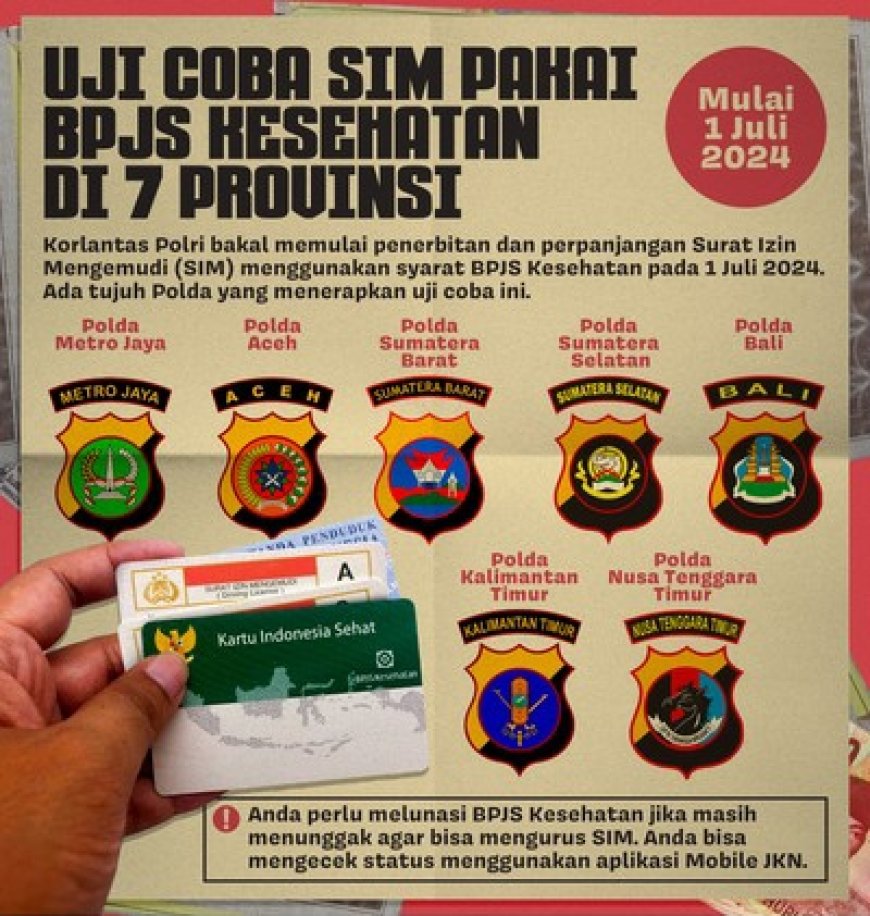 "Kalau sudah punya atau terdaftar di BPJS itu proses pembuatan SIM akan seperti biasanya. Kalau (iuran) BPJS menunggak itu akan diarahkan agar mendaftar lewat aplikasi mereka," jelasnya.
