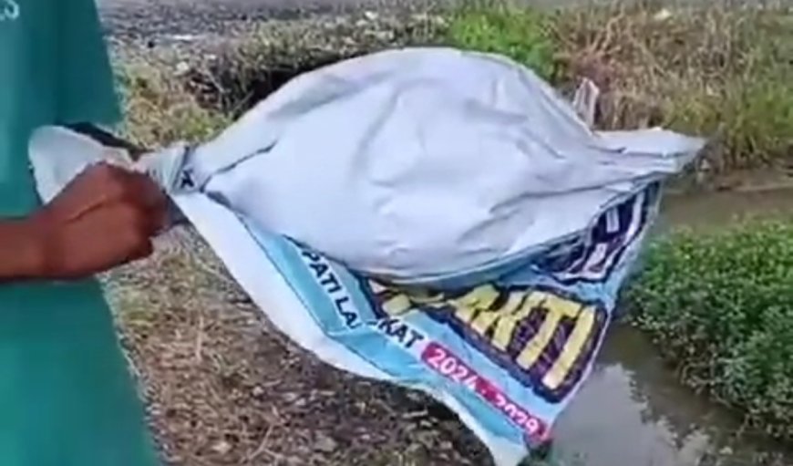 Pria itu pun bergegas langsung membongkar spanduk Satria yang dibentuk mirip pocong. Ternyata isi di dalam spanduk itu, batang tebu yang sudah diperas.