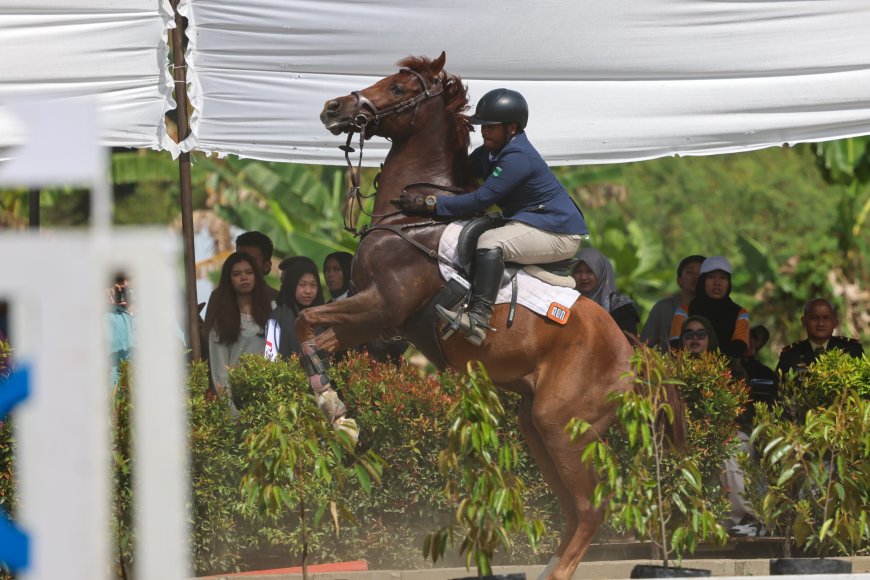 "Cabang olahraga berkuda, khususnya pada disiplin equestrian seperti perlombaan tunggang serasi dan lompat rintangan. Ini bukan hanya sekadar olahraga, tetapi juga menunjukkan seni dalam sebuah harmoni," ujar Surya.