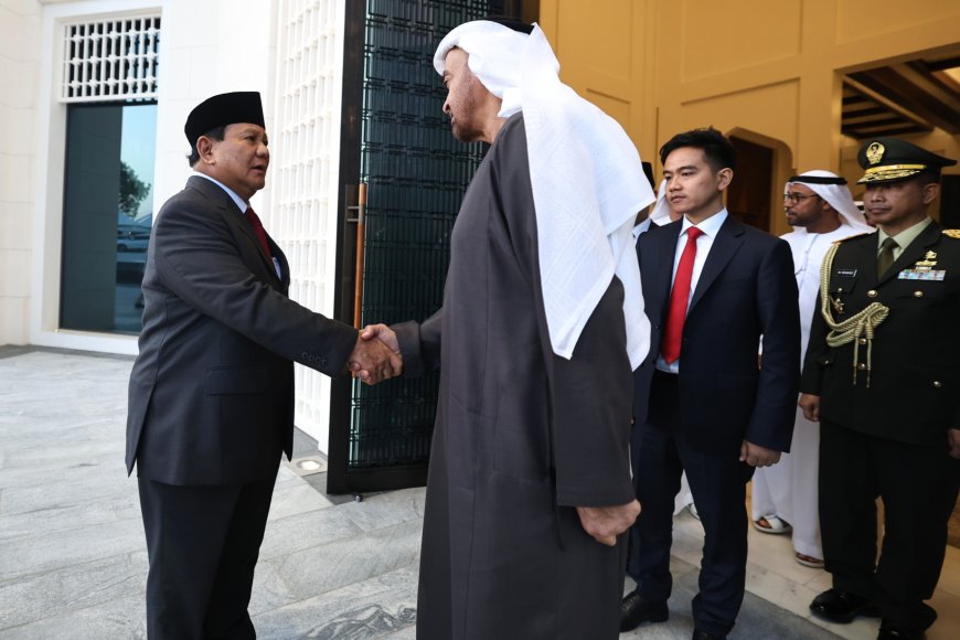 Nusantaraterkini.co, JAKARTA - Presiden terpilih periode 2024-2029 Prabowo Subianto beserta Wakil Presiden terpilih Gibran Rakabuming Raka menemui presiden Uni Emirat Arab (UEA) Syeikh Mohamed bin Zayed Al Nahyan (MBZ) di Istana Al Shati, Abu Dhabi.