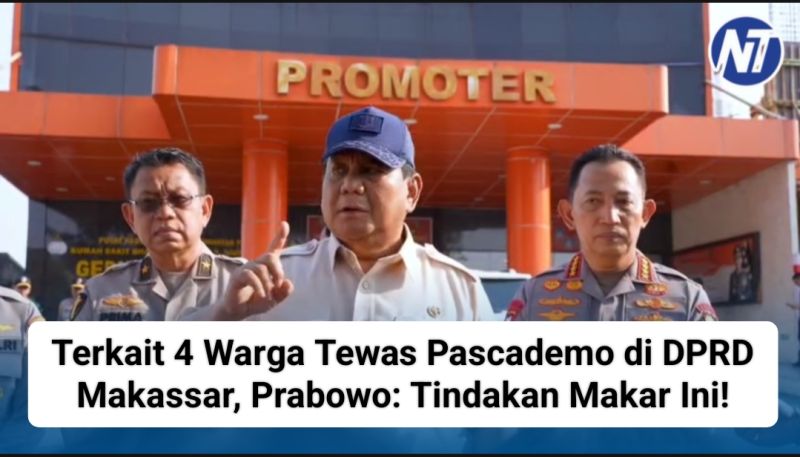 Nusantaraterkini.co, Jakarta – Presiden Prabowo Subianto, menegaskan bahwa tewasnya empat warga sipil di Makassar merupakan akibat tindakan perusuh, bukan bagian dari penyampaian aspirasi yang seharusnya.