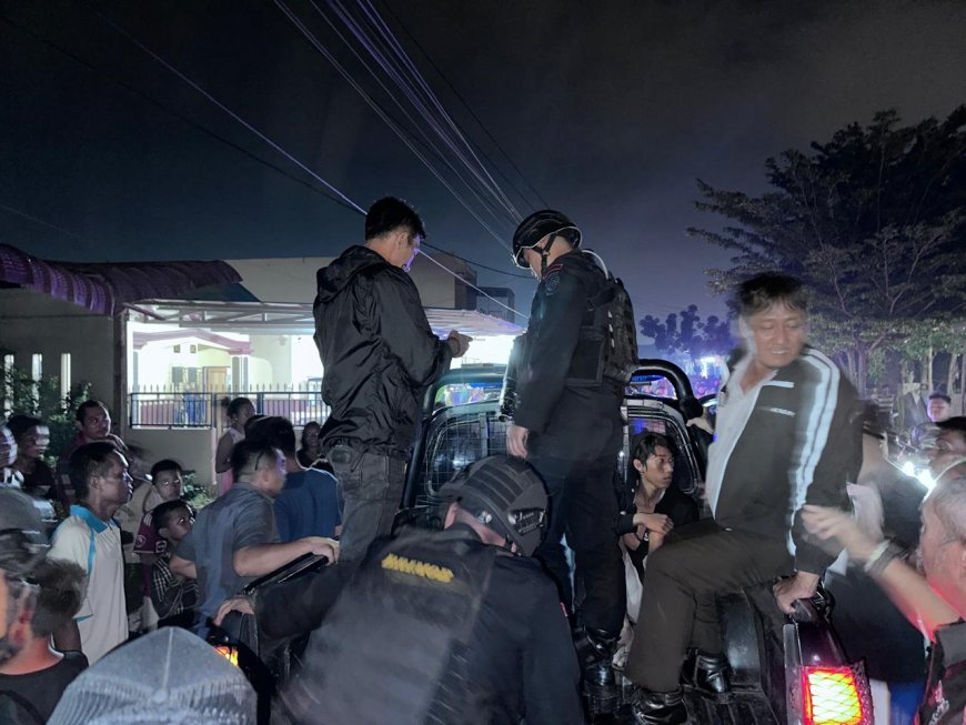 Nusantaraterkini.co, MEDAN - Sat Brimob Polda Sumut bersama Polsek Medan Tembung turun ke lokasi tawuran yang meresahkan warga di Pasar 12 Tembung, Kecamatan Percut Sei Tuan, Selasa (2/7/2024) dini hari.