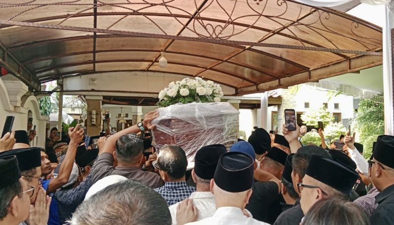 Suasana duka menyelimuti lokasi rumah duka saat iring-iringan jenazah tiba dari Jakarta. Setelah disemayamkan sejenak di rumah duka, jenazah dijadwalkan akan dibawa ke Masjid Agung Palembang untuk dishalatkan, sebelum akhirnya dikebumikan di Tempat Pemakaman Umum (TPU) Kebun Bunga.