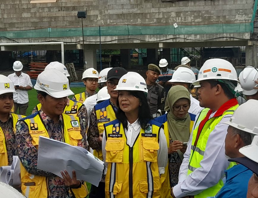 Nusantaraterkini.co, MEDAN - Menteri Pekerjaan Umum (Wamen PU), Diana Kusumastusi, meninjau progres revitalisasi Stadion Teladan, di Kecamatan Medan Kota, Rabu (19/3/2025).