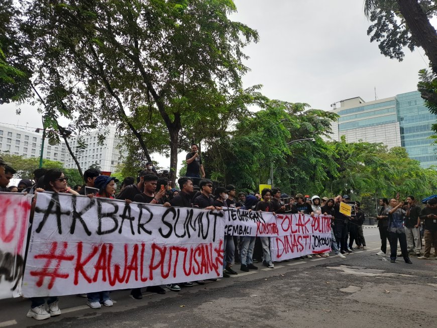 "Tolak dinasti politik, tolak dinasti politik," teriak aksi massa dari dalam barisan.