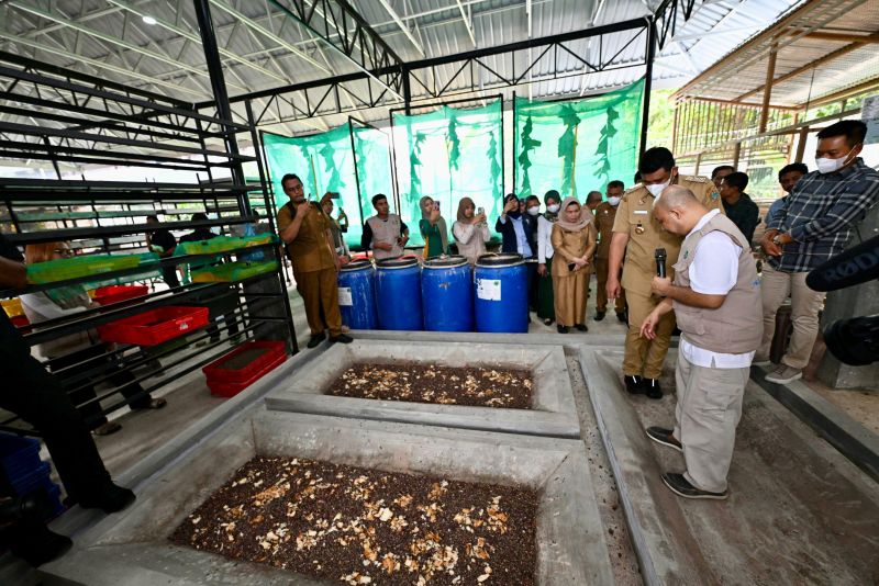 Sampah organik, termasuk daun dan ranting, diubah menjadi kompos atau Refuse-Derived Fuel (RDF). Sementara sisa makanan, diolah menjadi pakan maggot (larva lalat Black Soldier Fly) yang kemudian menjadi “aktor utama” dalam siklus ini.
