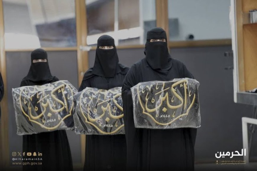 Dalam video dan foto yang diunggah oleh pengelola Masjidil Haram, Minggu (7/7/2024), tampak sejumlah wanita yang merupakan petugas pengelola masjid suci tersebut, membawa sejumlah bagian kiswah, seperti emblem.