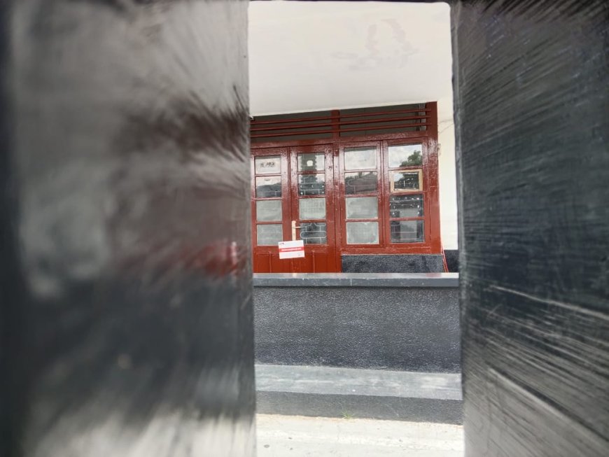 Tidak tampak tanda-tanda aktivitas di area kantor tersebut. Pintu pagar juga dalam kondisi tergembok.