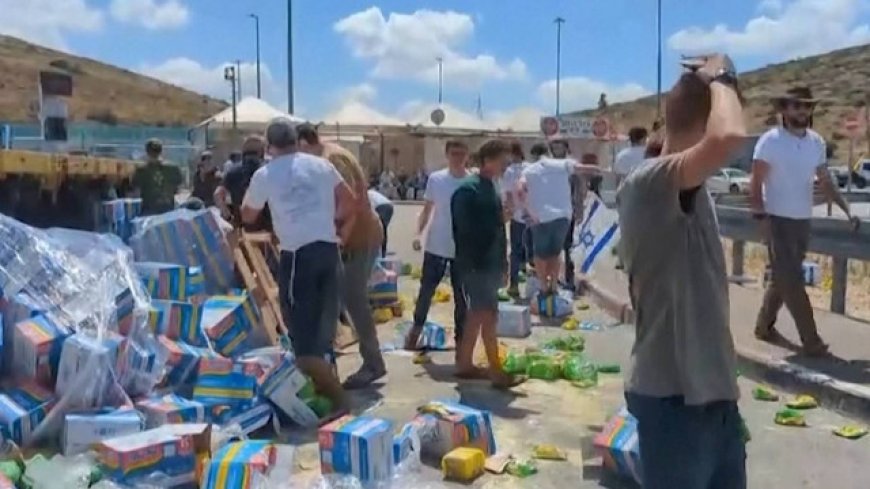 Laporan Sky News menyebutkan, bantuan untuk warga Gaza yang diangkut dengan truk dibiarkan jatuh di jalan raya usai diadang pengunjuk rasa Israel.