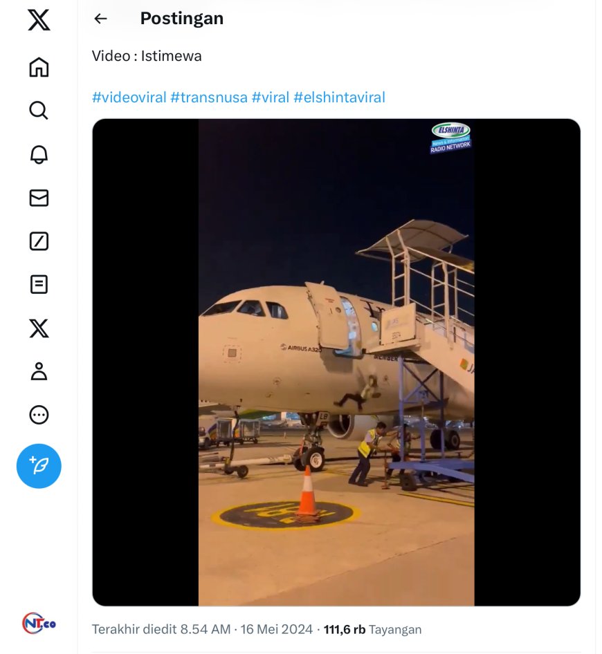Dalam postingan tersebut juga menyatakan seorang pegawai bandara terjatuh dari tangga pesawat area pintu penumpang airbus A320 TransNusa akibat tangga dilepas sebelum waktunya saat pintu pesawat terbuka di satu bandara di Indonesia.