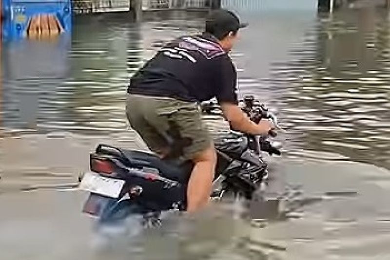 Nusantaraterkini.co, PEMALANG-Beredar video viral di media sosial memperlihatkan aksi seorang pengendara sepeda motor menerabas banjir di Jalan Ahmad Yani, Blandong, Comal, Pemalang Jawa Tengah.