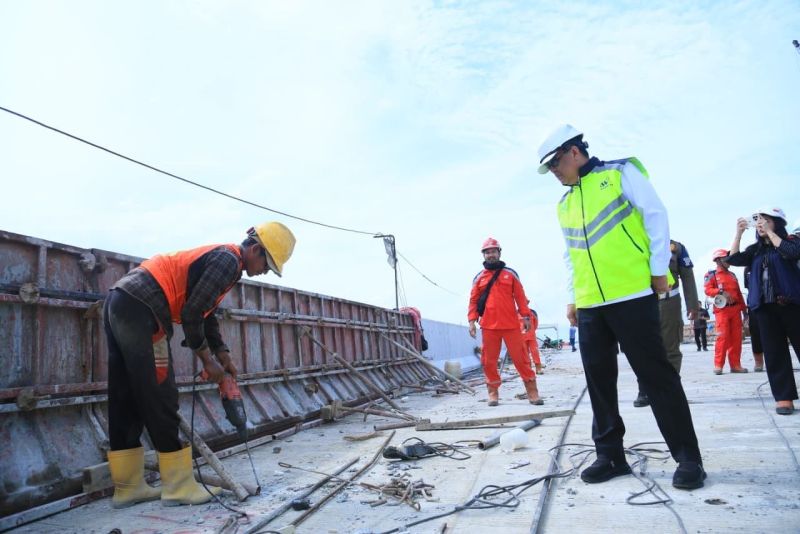 Dalam peninjauan tersebut, ia memastikan bahwa pengerjaan jembatan masih berjalan sesuai dengan rencana yang telah ditetapkan sebelumnya.