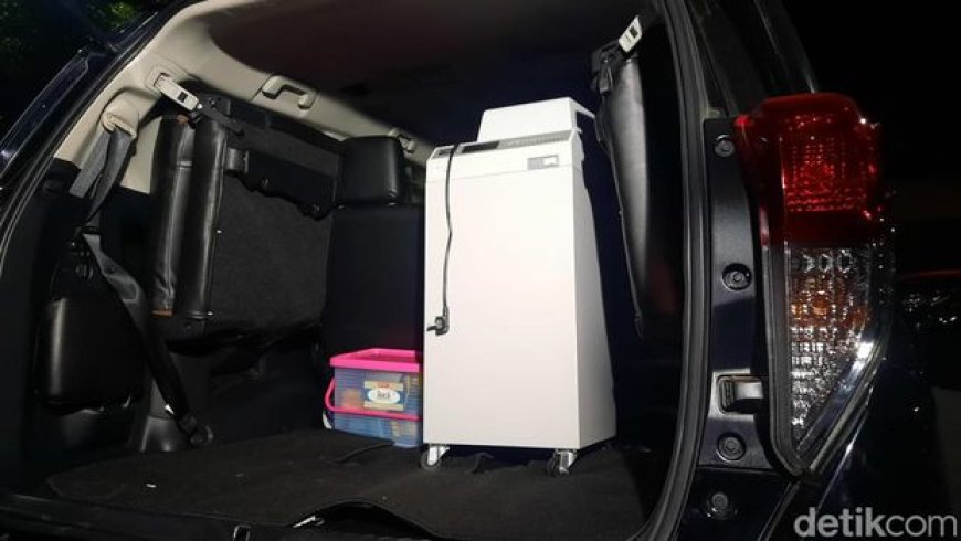 Mesin penghitung uang itu kerap digunakan bank, berwarna putih. Alat penghitung uang itu sudah berada di dalam bagasi mobil yang dibawa KPK.